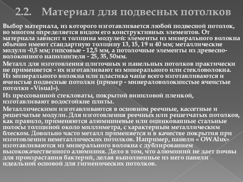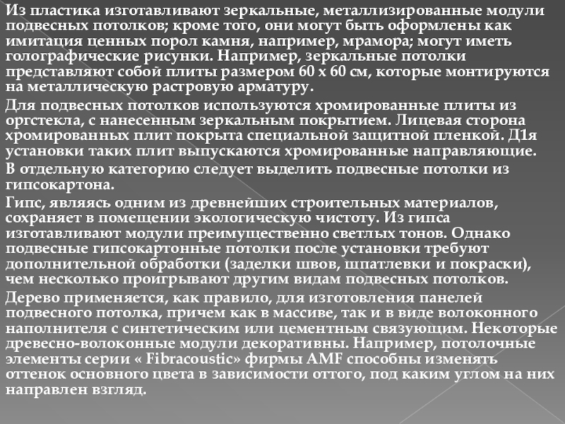 Слайд 12Понятно, что модули для подвесного потолка выбираются в зависимости от свойств