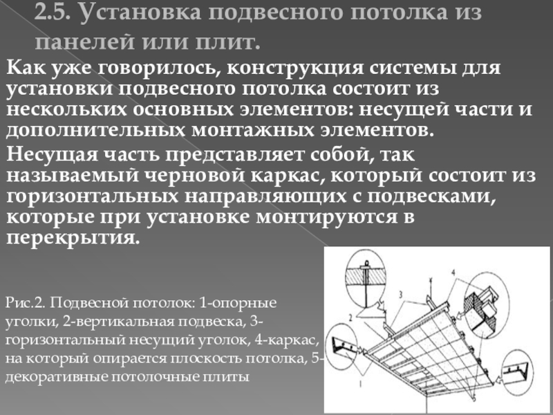 Слайд 172.5. Установка подвесного потолка из панелей или плит.