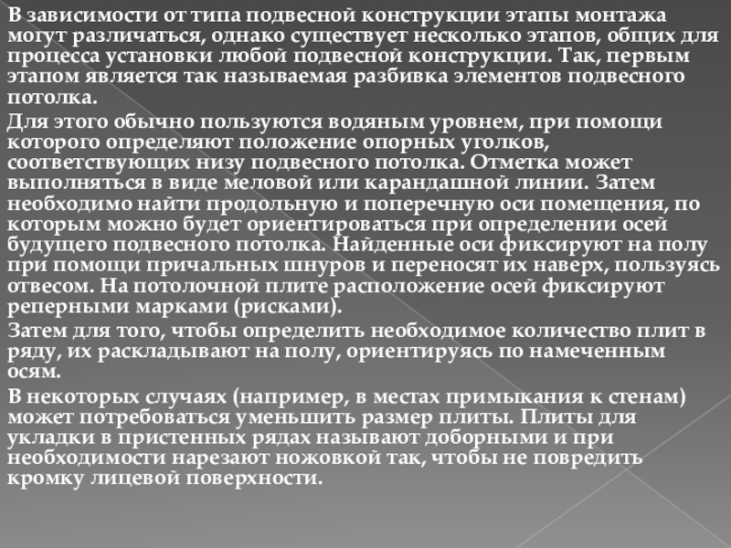 Слайд 19В зависимости от типа подвесной конструкции этапы монтажа могут различаться, однако