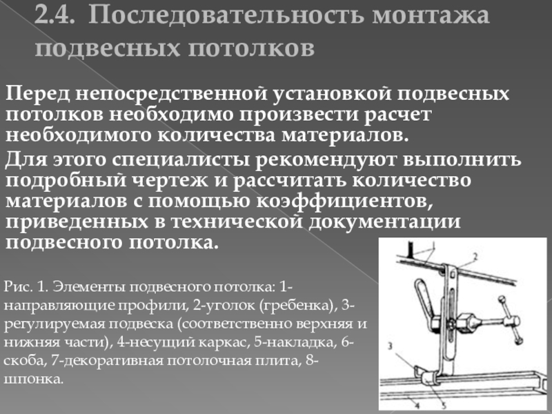 Слайд 162.4. Последовательность монтажа подвесных потолков
