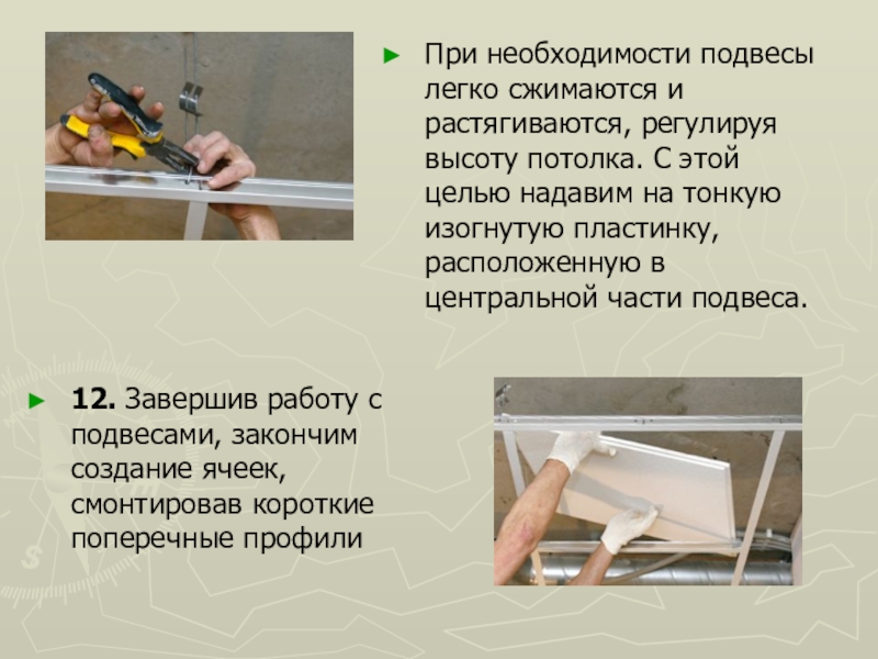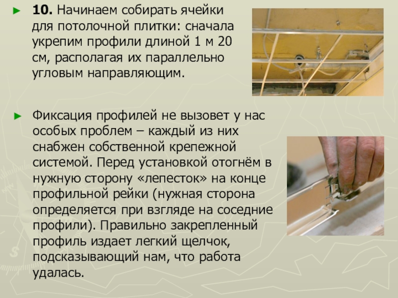 12. Завершив работу с подвесами, закончим создание ячеек, смонтировав короткие поперечные профили