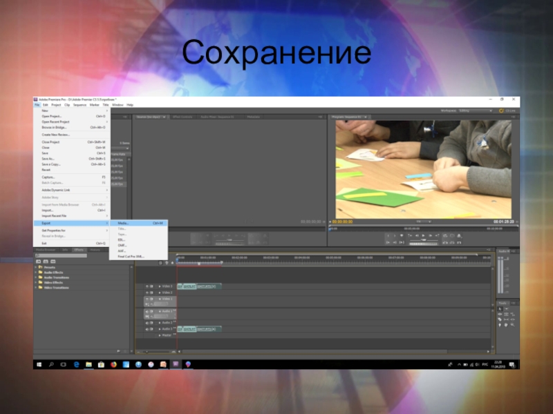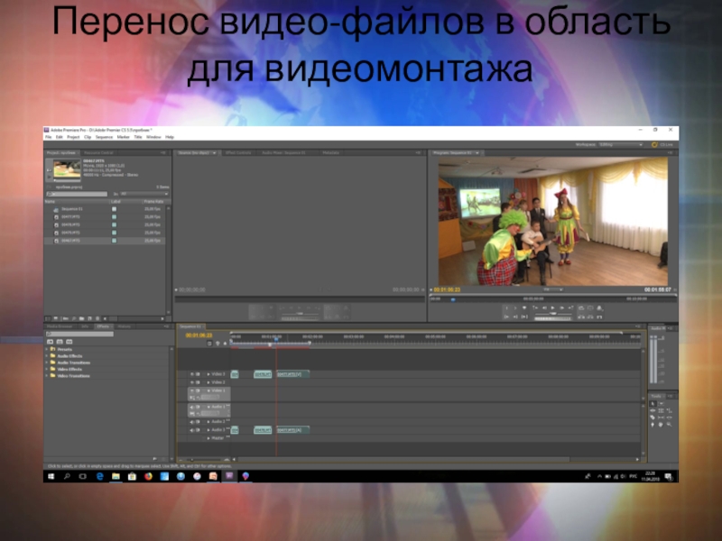 Слайд 6Перенос видео-файлов в область для видеомонтажа