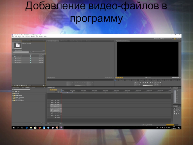 Слайд 5Добавление видео-файлов в программу