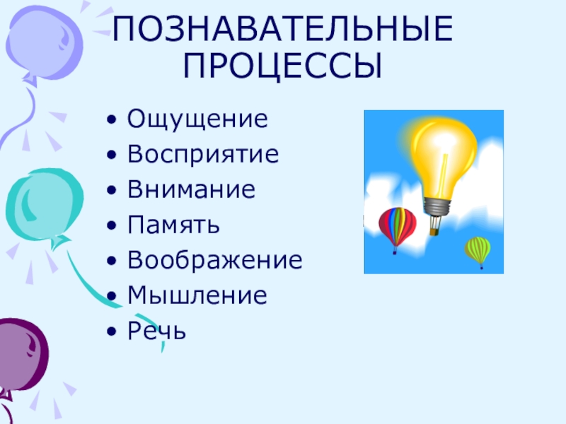 Слайд 5ПОЗНАВАТЕЛЬНЫЕ ПРОЦЕССЫ