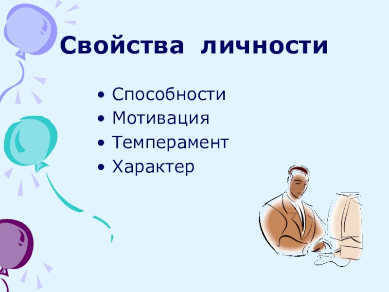 Свойства личностиСпособностиМотивацияТемпераментХарактер