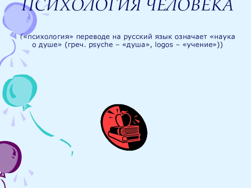 ПСИХОЛОГИЯ ЧЕЛОВЕКА («психология» переводе на русский язык означает «наука о душе» (греч. psyche – «душа», logos – «учение»))