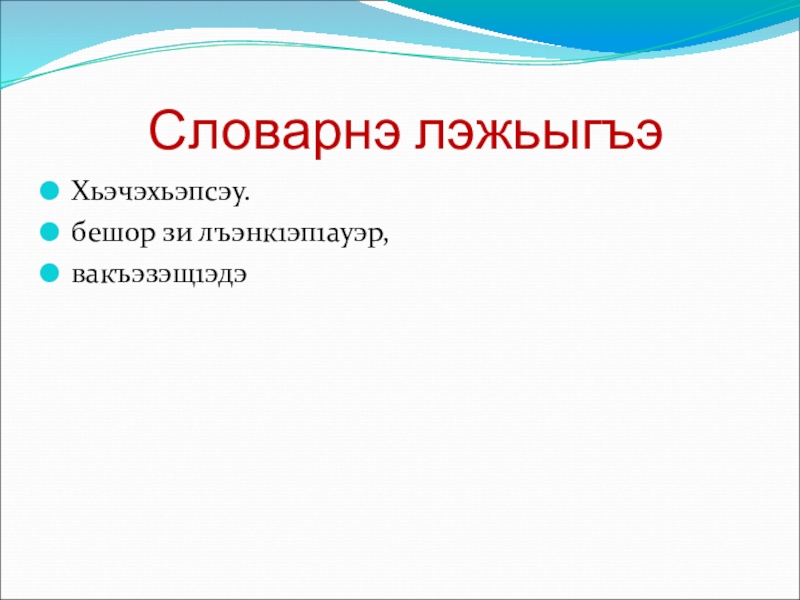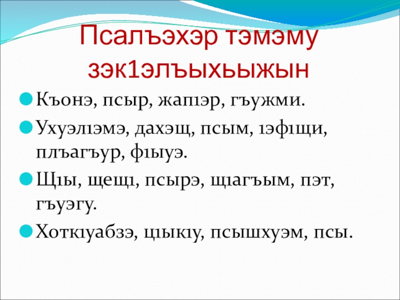 Слайд 9Псалъэхэр тэмэму зэк1элъыхьыжын