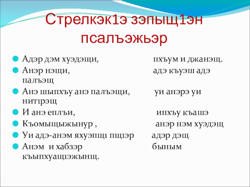 Слайд 13Стрелкэк1э зэпыщ1эн псалъэжьэр