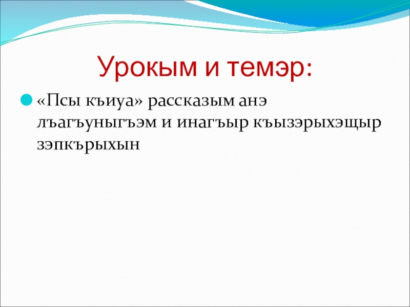 Урокым и темэр:«Псы къиуа» рассказым анэ лъагъуныгъэм и инагъыр къызэрыхэщыр зэпкърыхын