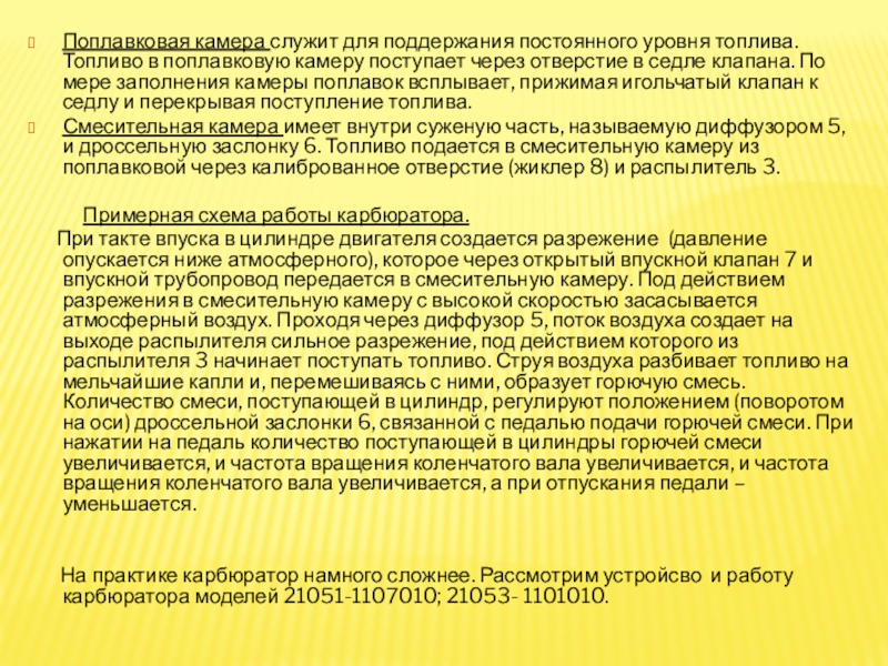 Канал балансировки поплавковой камеры
