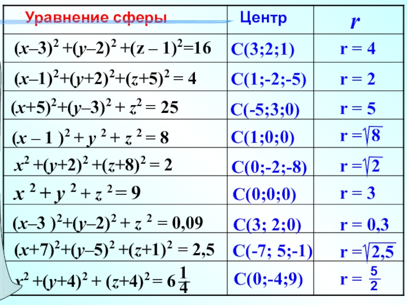 (x+7)2+(y–5)2 +(z+1)2 = 2,5