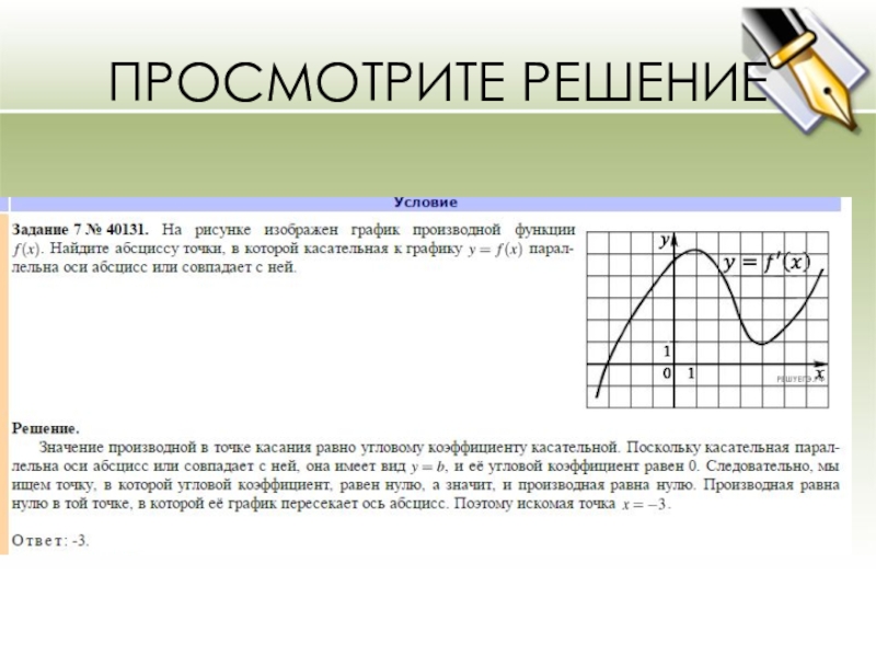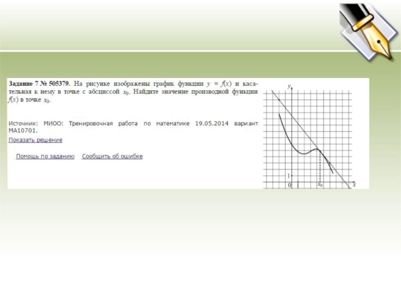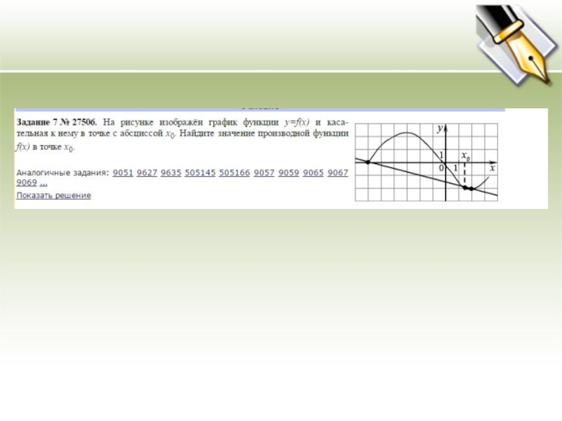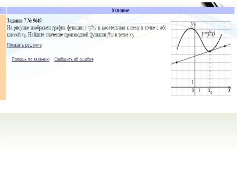 f ′(хo) = tg α = k равно угловому коэффициенту касательной,