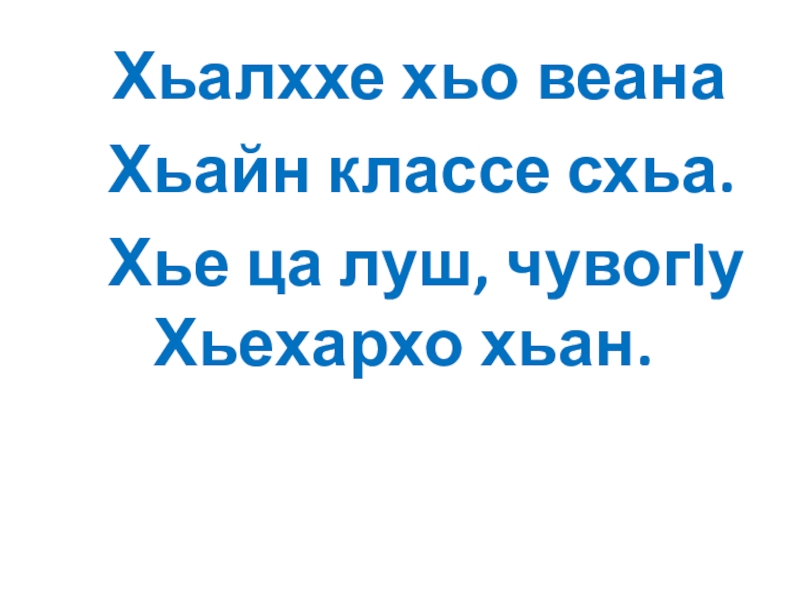 Хьалххе хьо веана Хьайн классе схьа. Хье ца луш, чувогIу Хьехархо хьан.