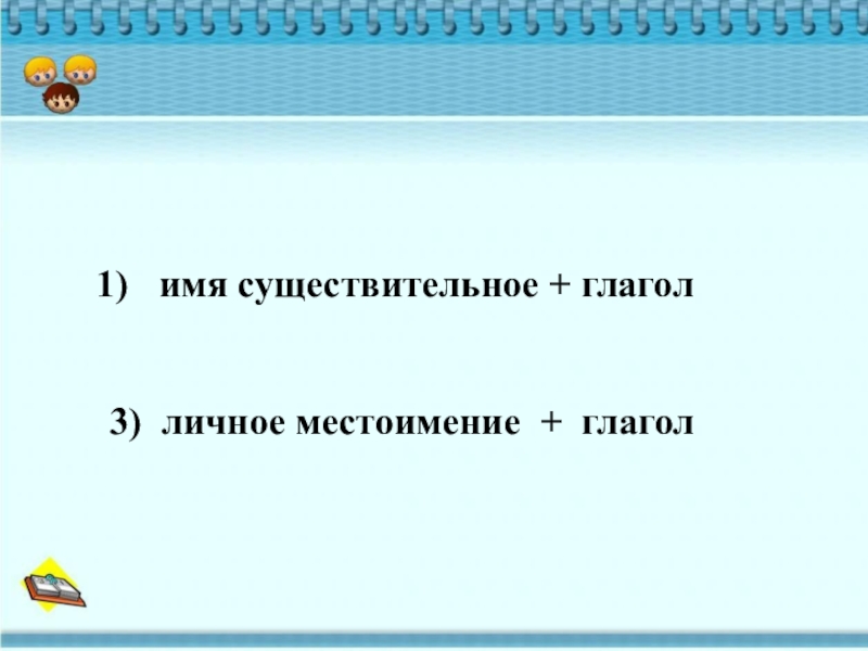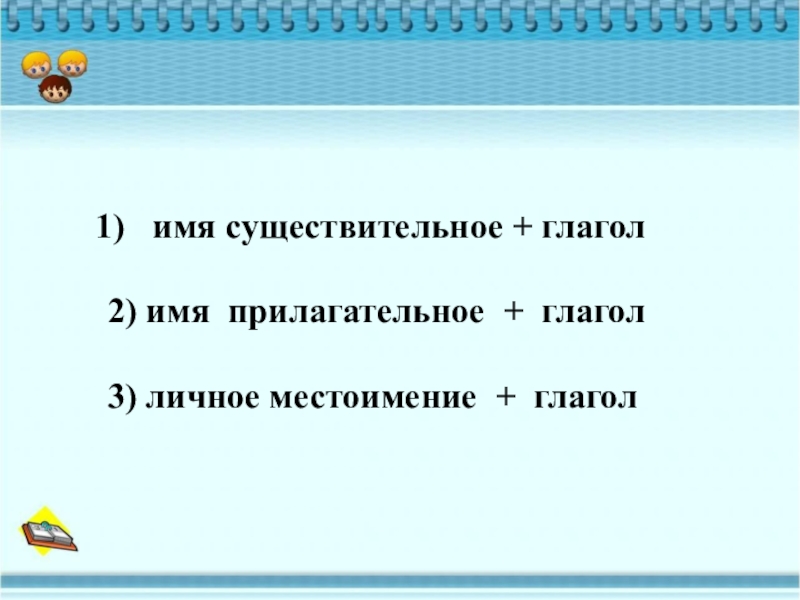 имя существительное + глагол 2) имя прилагательное + глагол 3) личное местоимение + глагол