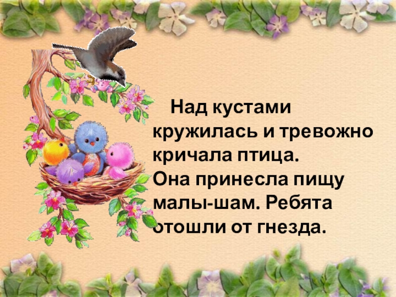 щу малышам. Ребята отошли от гнез-да.