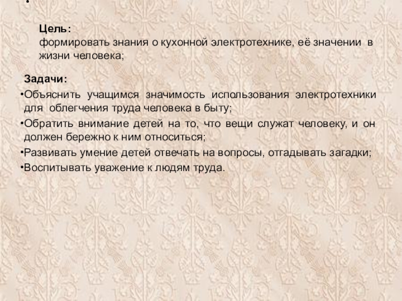 Объяснить учащимся значимость использования электротехники для облегчения труда человека в быту;
