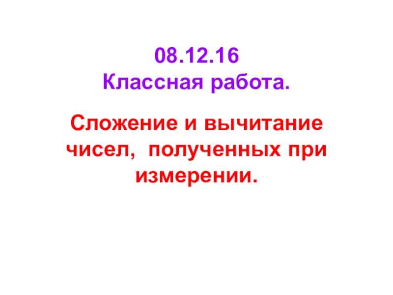 08.12.16 Классная работа. Сложение и вычитание чисел, полученных при измерении.