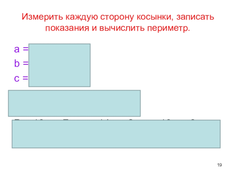 Слайд 19Измерить каждую сторону косынки, записать показания и вычислить периметр.