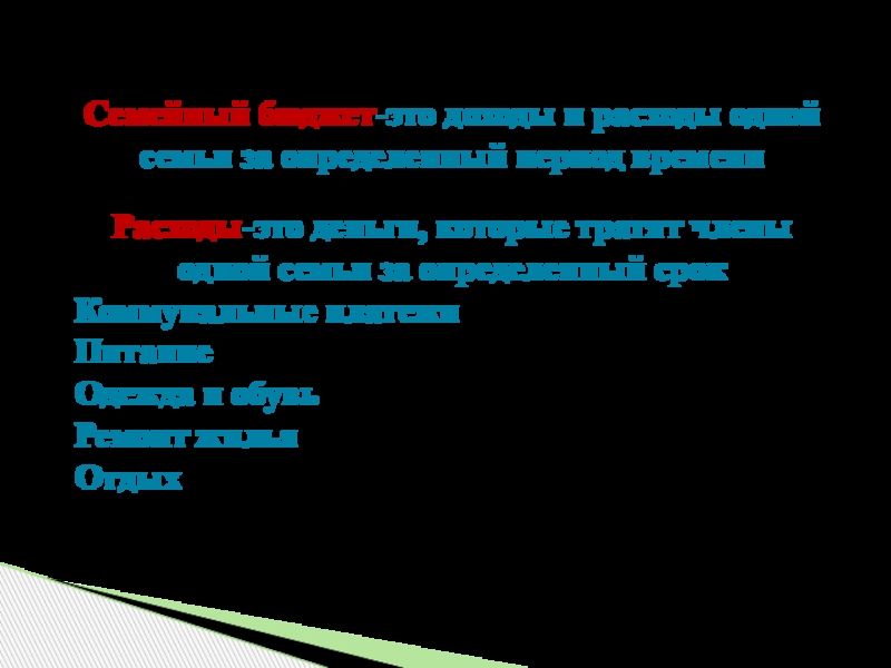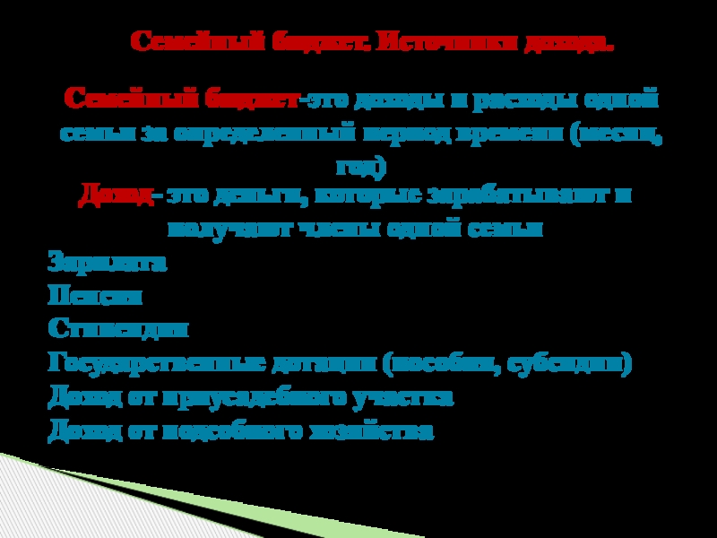 Доход- это деньги, которые зарабатывают и получают члены одной семьи