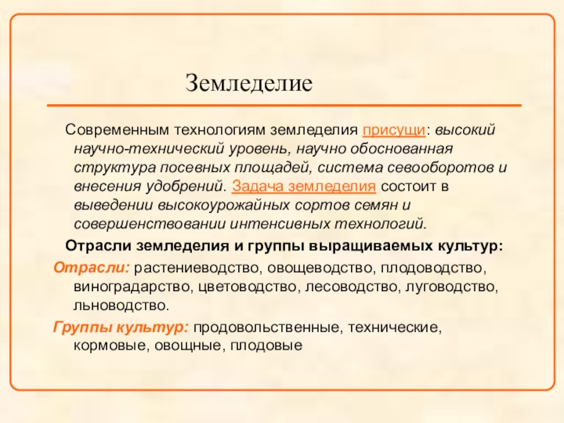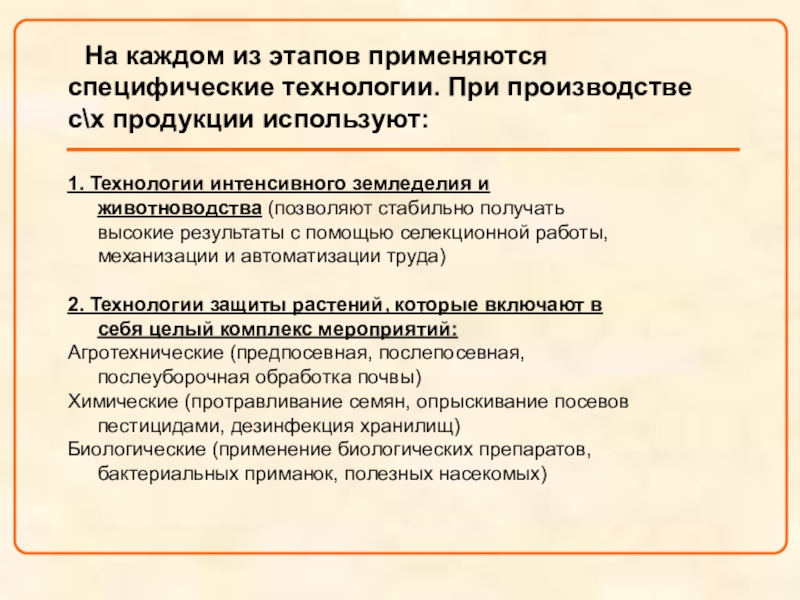 1. Технологии интенсивного земледелия и животноводства (позволяют стабильно получать высокие результаты с помощью селекционной работы, механизации и автоматизации труда)