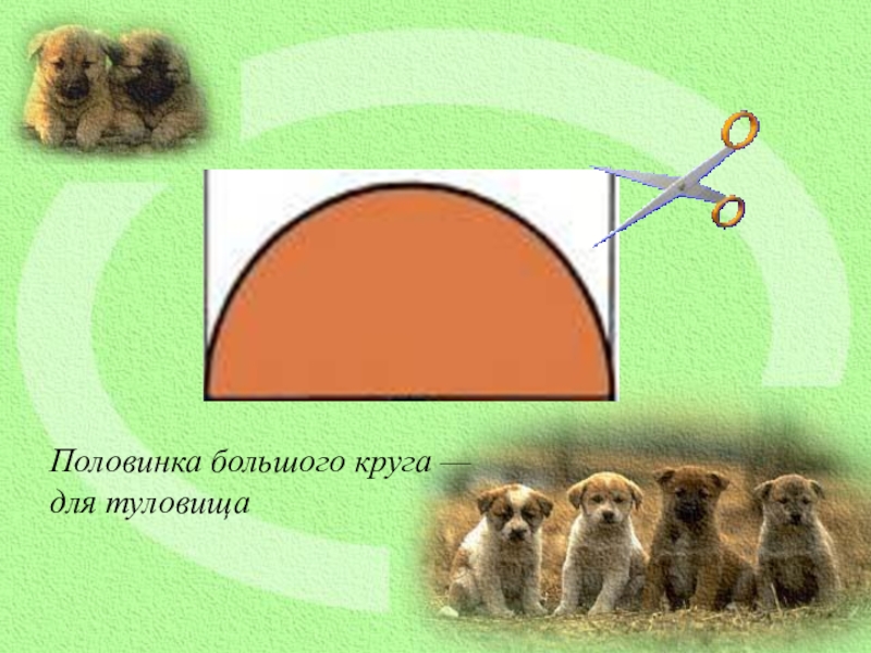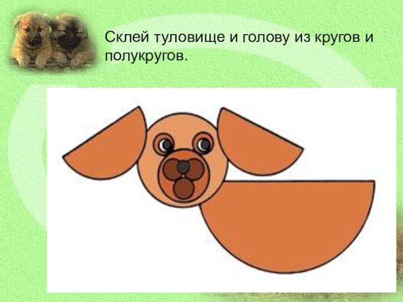 Слайд 7Склей туловище и голову из кругов и полукругов.