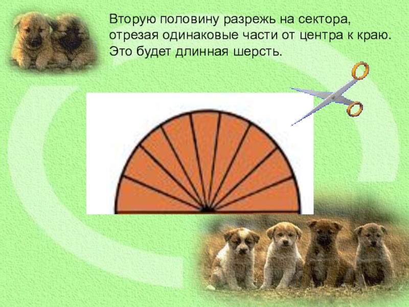 Вторую половину разрежь на сектора, отрезая одинаковые части от центра к краю. Это будет длинная шерсть.