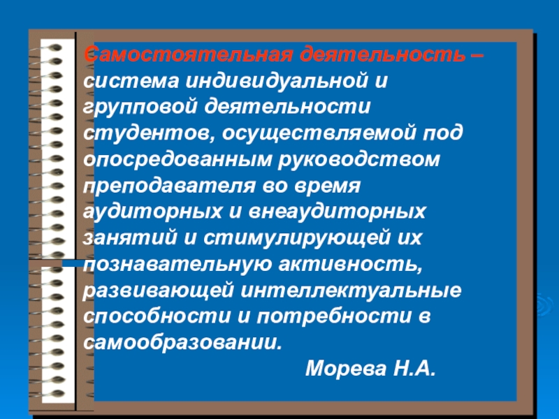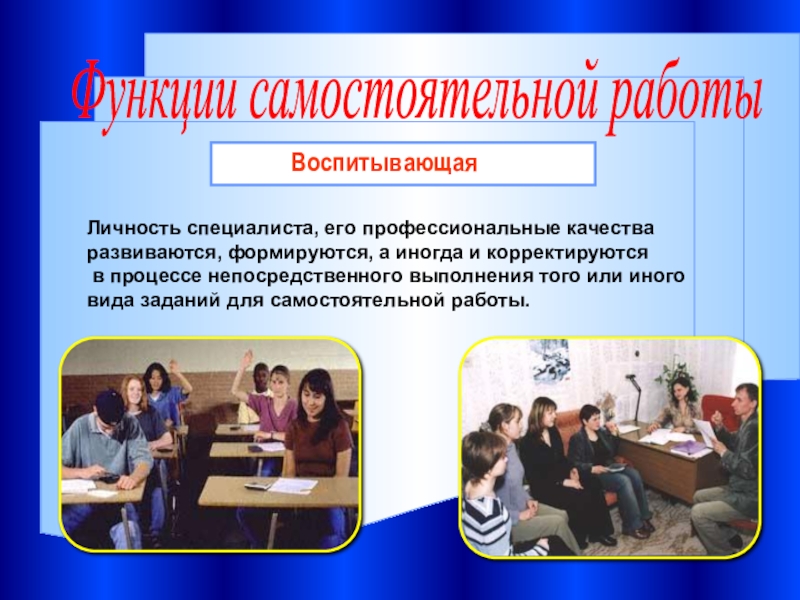 В процессе самостоятельной работы реализуются общие цели воспитания, обучения, развития студентов