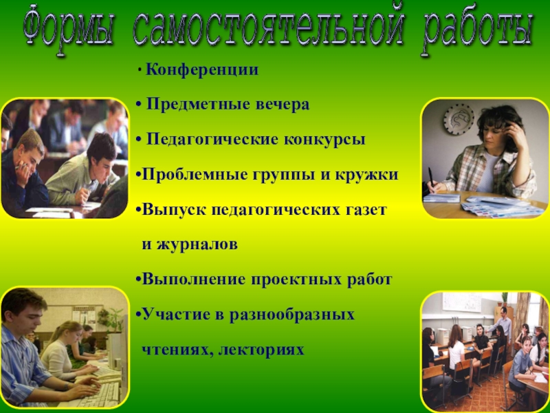 Формы самостоятельной работы