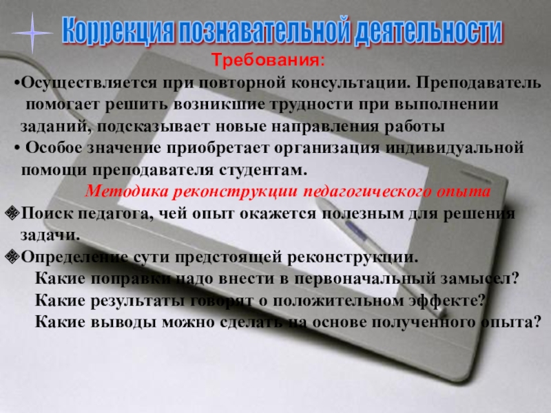 Находить средства коррекции при получении