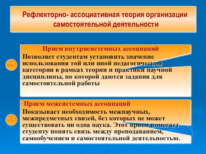 Показывает необходимость межнаучных, межпредметных связей, без которых не может существовать ни одна наука. Этот прием помогает студенту понять связь между преподаванием, самообучением и самостоятельной деятельностью.