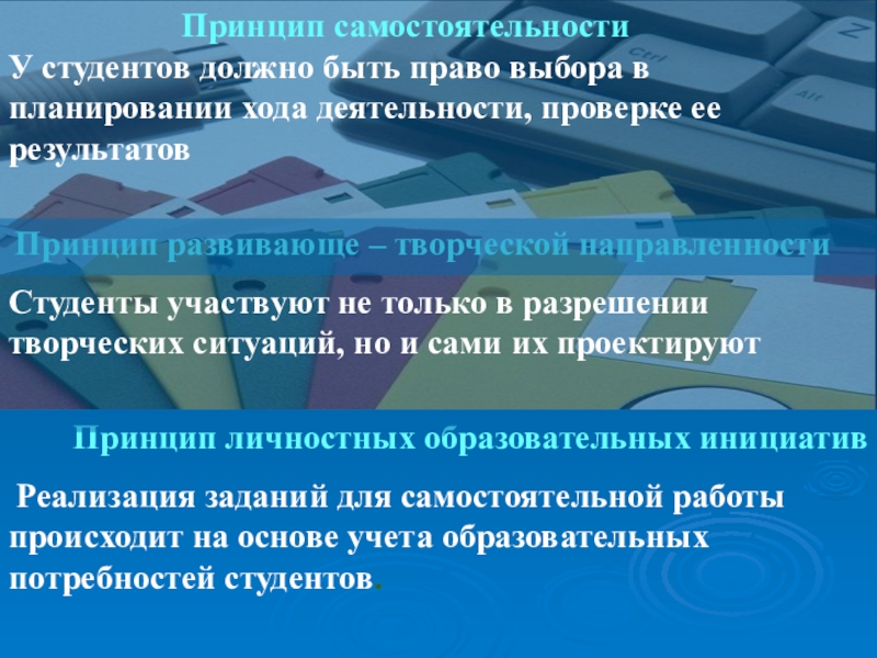 У студентов должно быть право выбора в планировании хода деятельности, проверке ее результатов