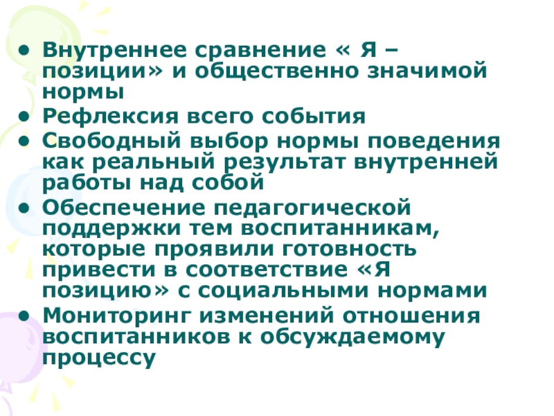 Внутреннее сравнение « Я –позиции» и общественно значимой нормы