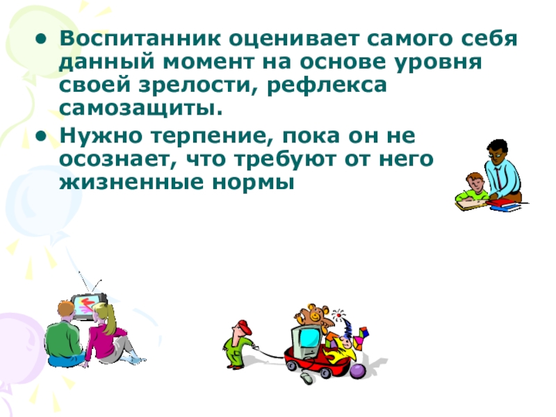 Слайд 22Воспитанник оценивает самого себя данный момент на основе уровня своей зрелости,