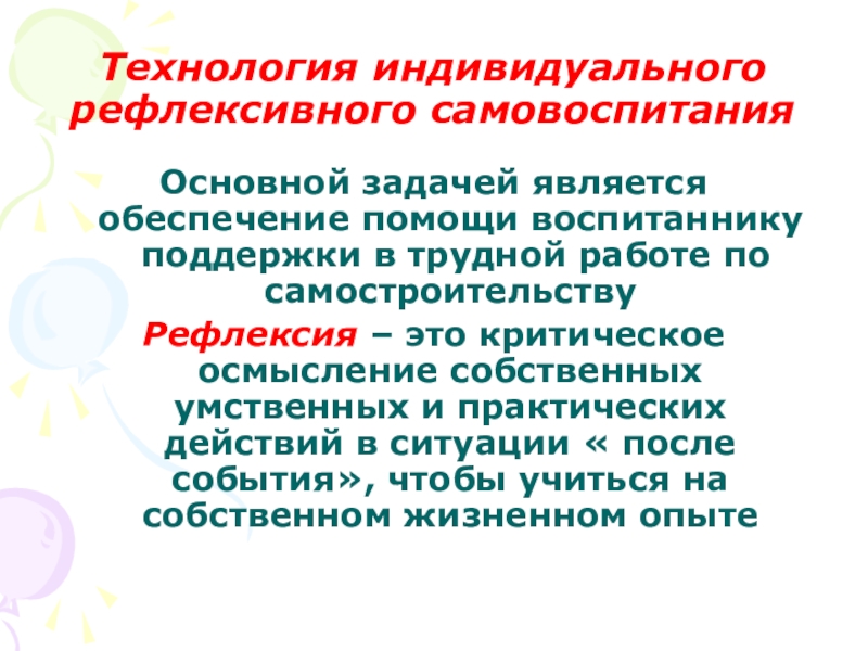 Слайд 17Технология индивидуального рефлексивного самовоспитания