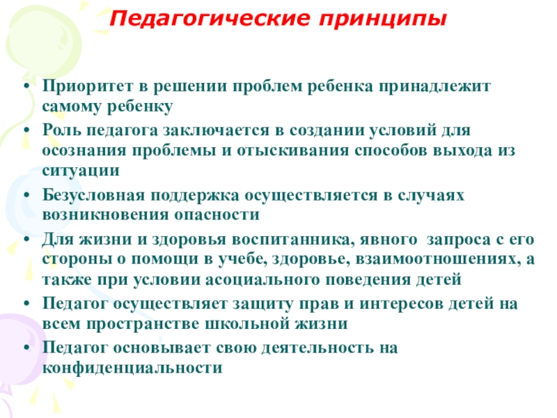 Приоритет в решении проблем ребенка принадлежит самому ребенку