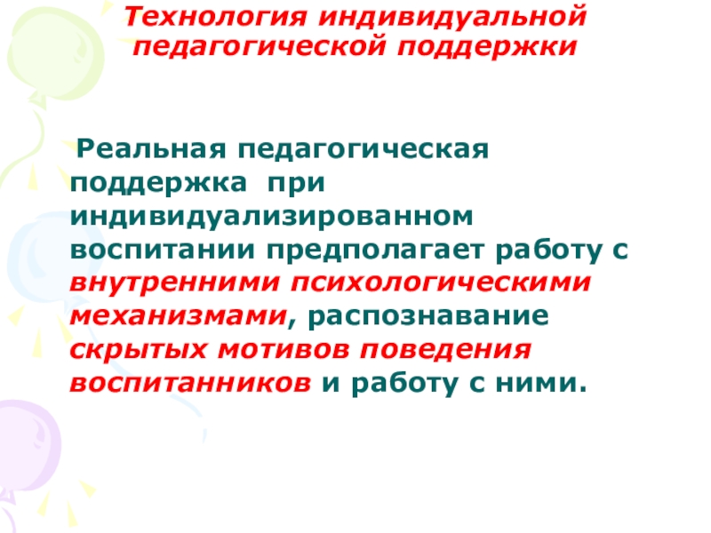 Реальная педагогическая поддержка при индивидуализированном воспитании