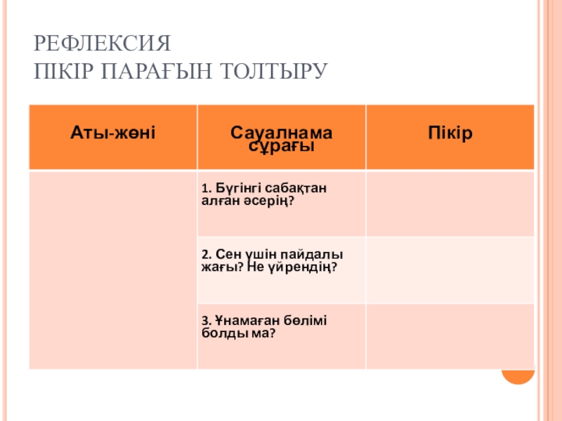 Слайд 10РЕФЛЕКСИЯ ПІКІР ПАРАҒЫН ТОЛТЫРУ