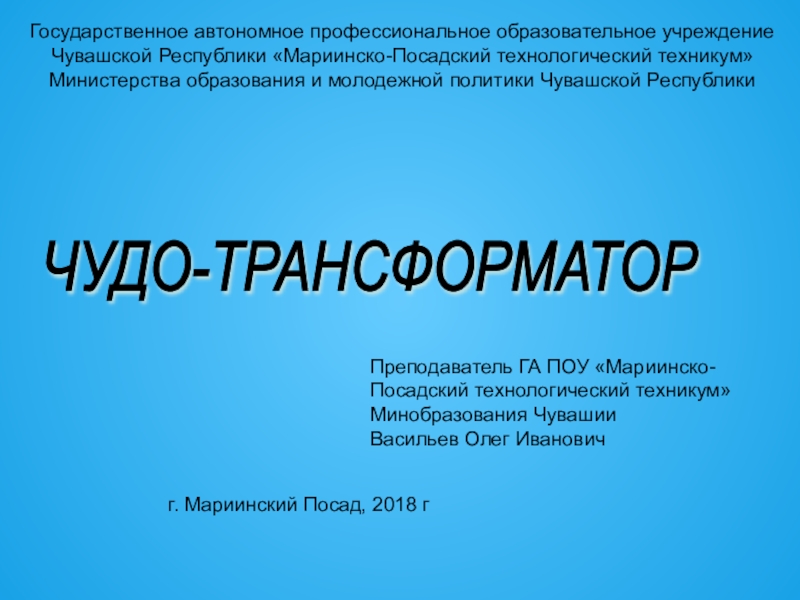 Преподаватель ГА ПОУ «Мариинско-Посадский технологический техникум» Минобразования Чувашии