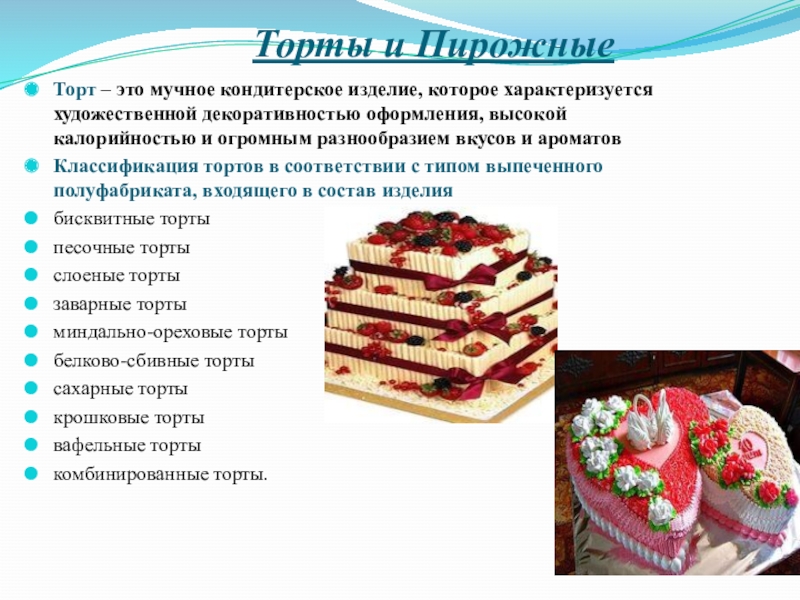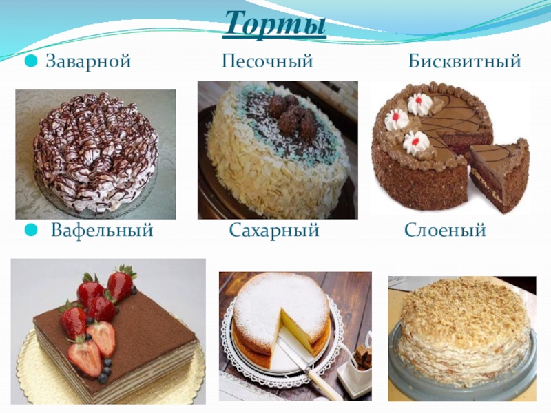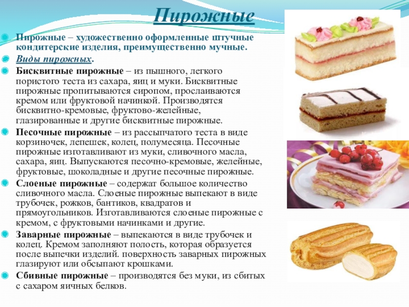 Виды пирожных.
