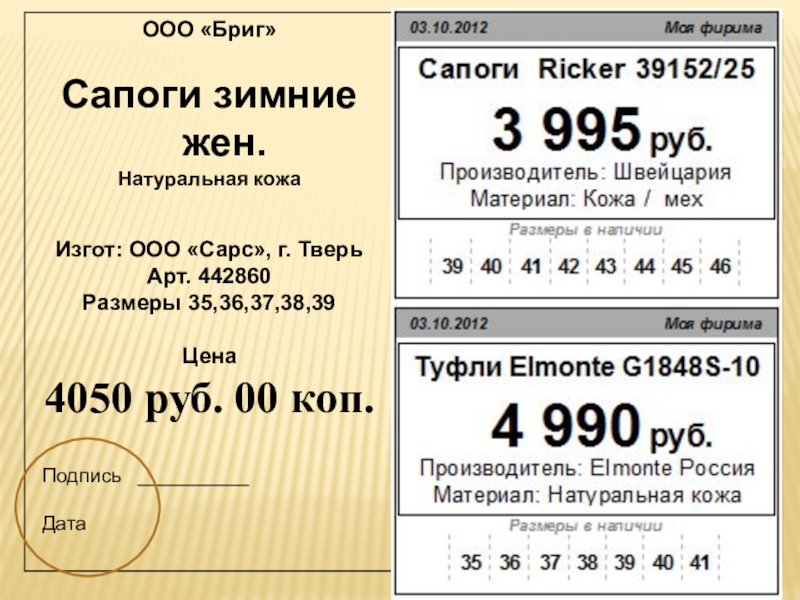 ознакомление с маркировкой, упаковкой, правилами размещения обуви на рабочем месте и продажи.