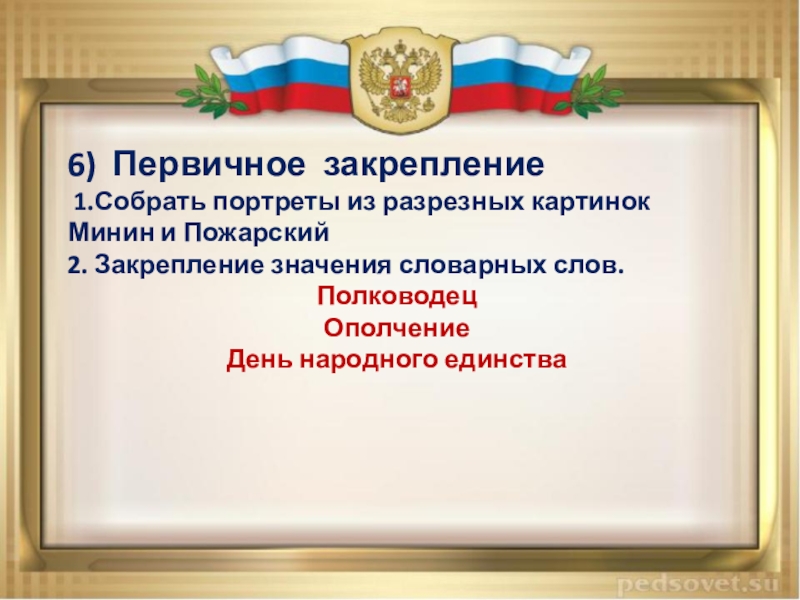 1.Собрать портреты из разрезных картинок Минин и Пожарский