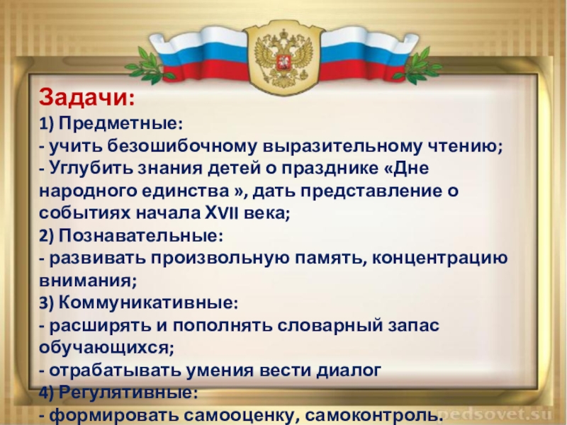 «Дне народного единства », дать представление о событиях начала ХVII века;