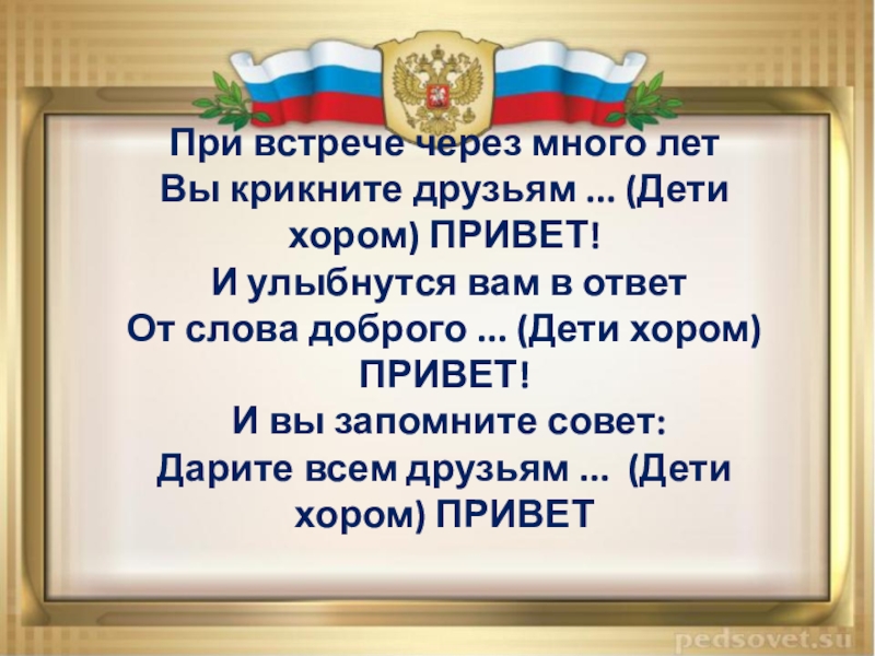 Дарите всем друзьям ... (Дети хором) ПРИВЕТ