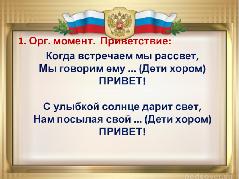 Нам посылая свой ... (Дети хором) ПРИВЕТ!