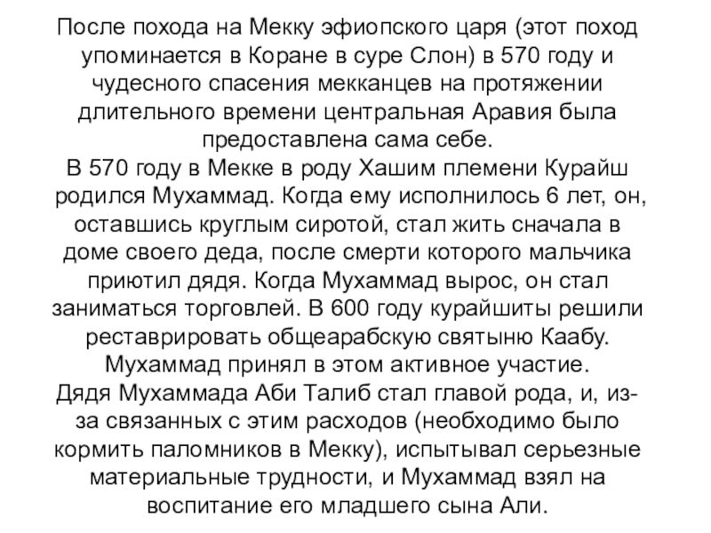 Слайд 4После похода на Мекку эфиопского царя (этот поход упоминается в Коране
