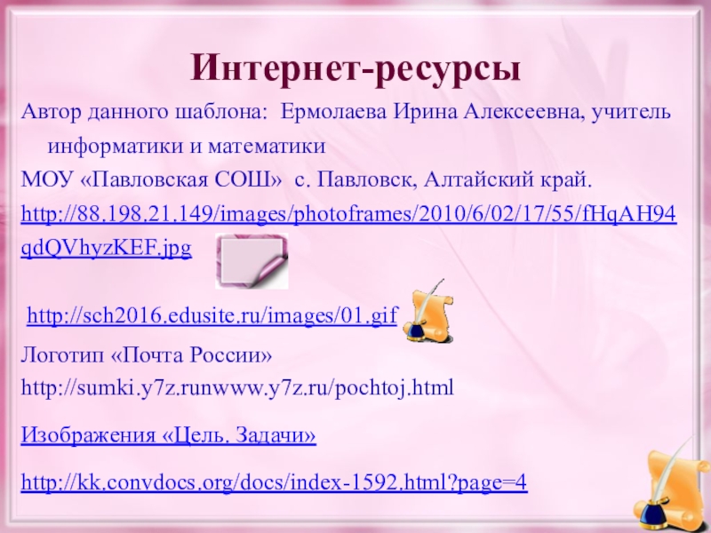 Это сайт презентаций, где можно хранить и обмениваться своими презентациями, докладами, проектами, шаблонами в формате PowerPoint с другими пользователями. Мы помогаем школьникам, студентам, учителям, преподавателям хранить и обмениваться учебными материалами.