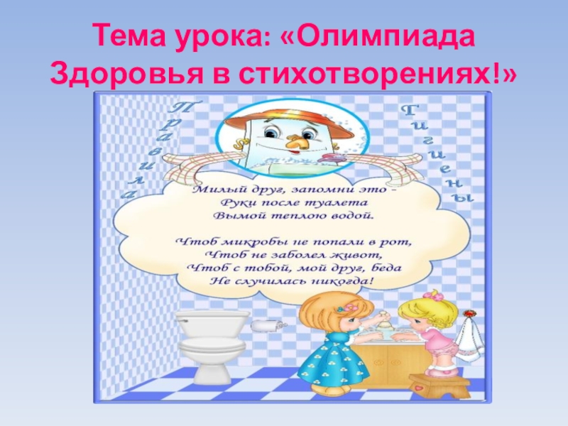 Слайд 2Тема урока: «Олимпиада Здоровья в стихотворениях!»