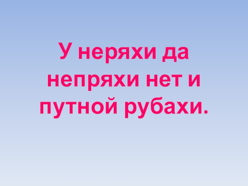 Слайд 13У неряхи да непряхи нет и путной рубахи.