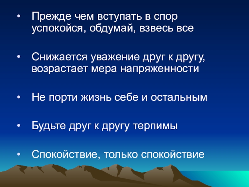 Прежде чем вступать в спор успокойся, обдумай, взвесь все