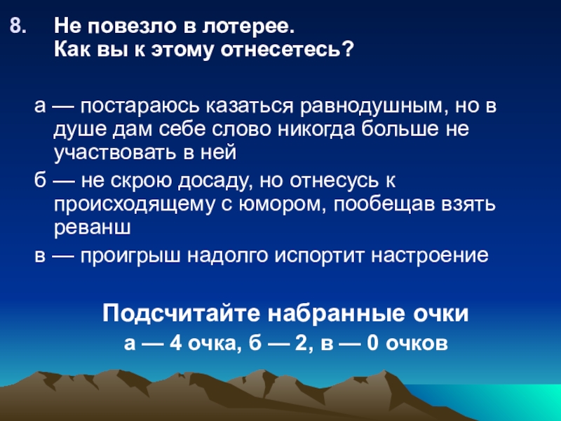 Слайд 17Подсчитайте количество баллов под номерами. Узнайте количество баллов по типам.